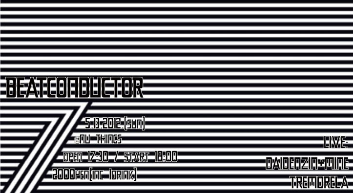 2012-04-302021-02-22 ttetc BEATCONDUCTOR@阿波座 nu things 2012.5.13 Liveで出演します。 nu things -schedule- いいね 読み込み中… 関連