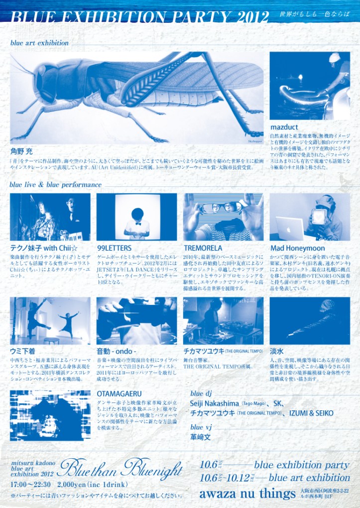 2012-09-042021-02-22 ttetc Blue than Blue night@阿波座 nu things 2012.10.6 Liveで出演します。http://www.mitsuru-kadono.com いいね 読み込み中… 関連
