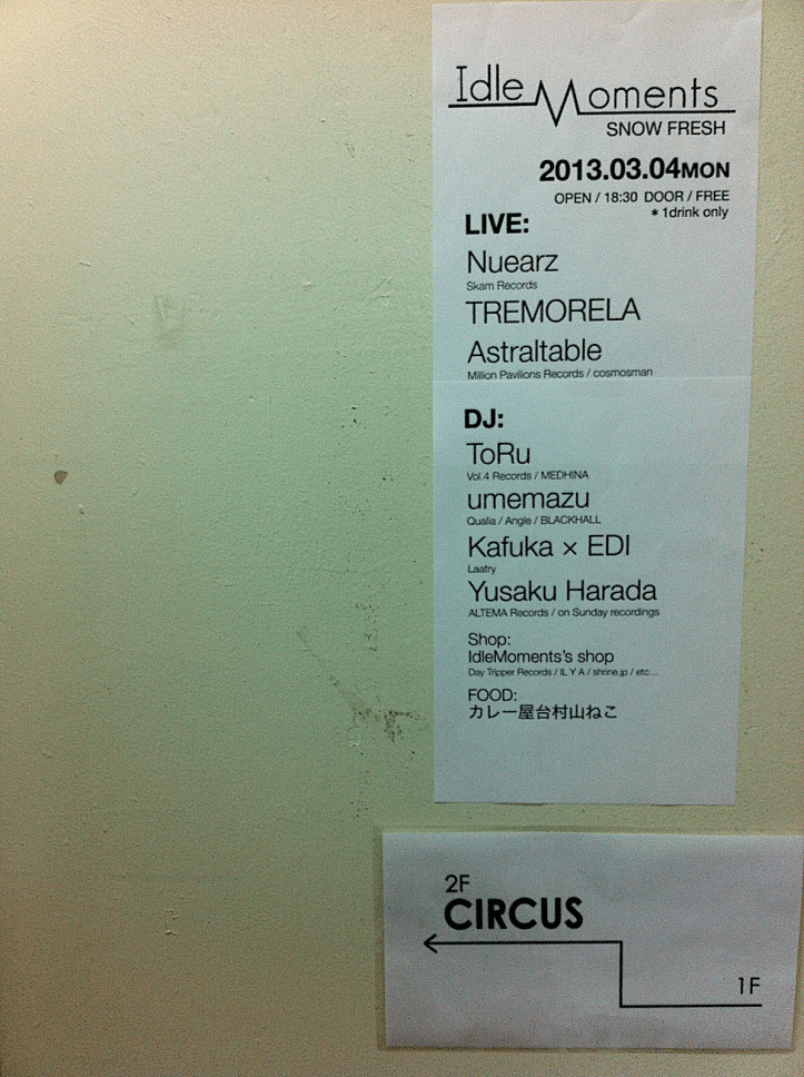 2013-03-072021-02-25 ttetc 2013.03.03~04 I×M by IdleMoments – Smoke Disport @CLUB CIRCUS 2013.03.04 JaccaPoP JaPan 「桃」@京都Blue Eyes 2013.03.03 いいね 読み込み中… 関連