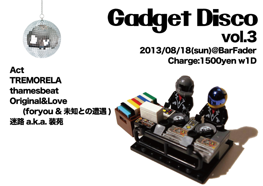 2013-08-122021-02-22 ttetc GadgetDisco vol.3 @BarFader 2013.8.18 Liveで出演します。GadgetDisco vol.3 2013.8.18 sun 19:00~@BarFaderCharge:1500yen with 1Drink [Act]TREMORELAthamesbeatOriginal & Love (foryou & 未知との遭遇)迷路 a.k.a. 装苑å いいね 読み込み中… 関連