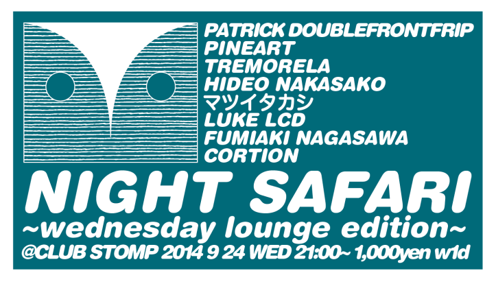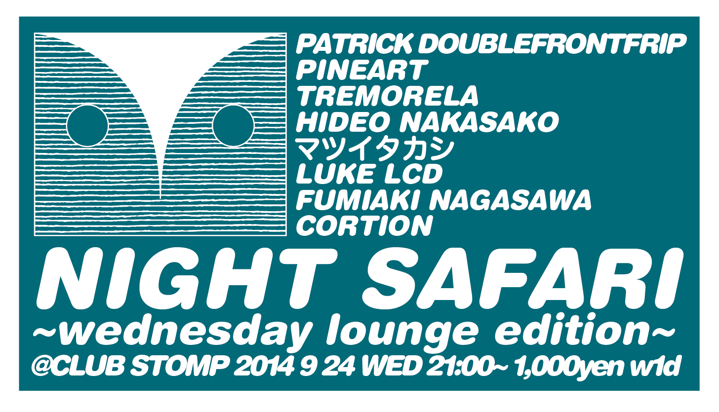 2014-09-042021-02-26 ttetc Night Safari ~wednesday lounge edition~ @Club Stomp 2014.9.24 ライブで参加します。Night Safari ~wednesday lounge edition~2014 9 24 wed.21:00~1,000- w1d@CLUB STOMP [act]Patrick DoublefrontfripPineart / TREMORELA / HideoNakasako /マツイタカシ / LukeLCD / FUUK / Cortion / Mizuki Miyamoto いいね 読み込み中… 関連
