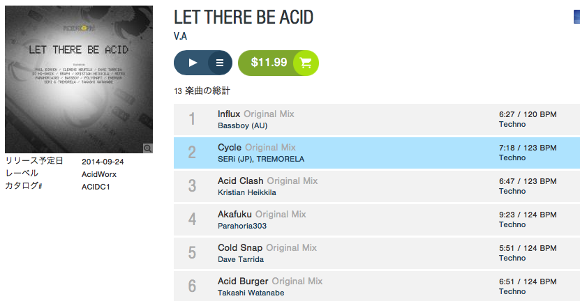 AcidWorxレーベル一周年コンピレーションに、SERIさんとの共作トラックで参加しています。