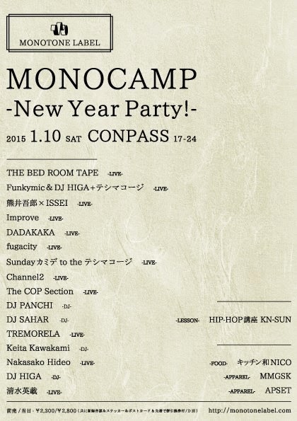 関西を拠点とするインディーレーベル”MONOTONE LABEL”。レーベル所属アーティストが総出演するNEW YEAR PARTY!