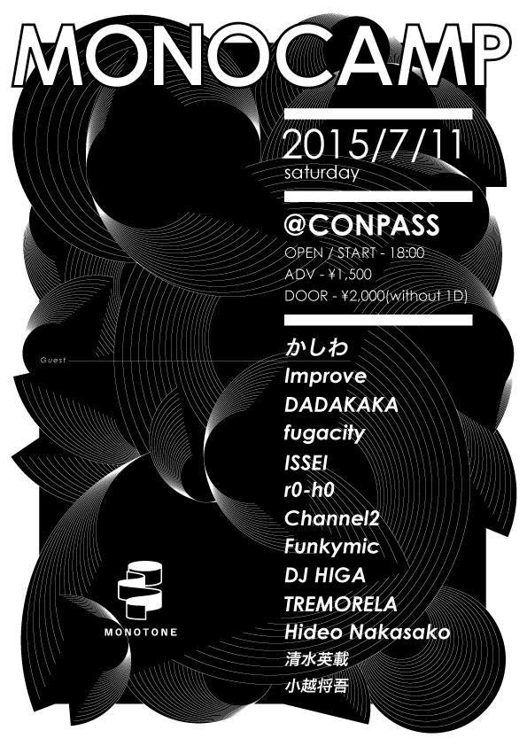 2015-06-242021-02-22 ttetc MONOCAMP @CONPASS 2015.7.11 Liveで参加します。MONOCAMP 7.11(土)OPEN: 18:00@心斎橋CONPASS前売り:1,500円 / 当日:2,000円(共にD別<出演>DADAKAKA、Improve、かしわ、fugacity、ISSEI、r0-h0、Channel2、Funkymic、TREMORELA、Hideo Nakasako、DJ HIGA、小越将吾 and more いいね 読み込み中… 関連