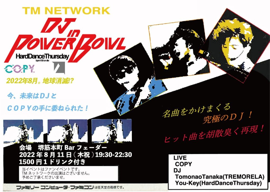 2022-07-012022-08-15 ttetc TMNight @Bar Fader 2022.8.11 TM NETWORKの楽曲オンリーでDJです。『TMNight』8/11(木祝) 19:30-22:30@Bar Fader1500円w1D[Live]COPY[DJ]You-KeyTomonaoTanaka(TREMORELA) いいね 読み込み中… 関連