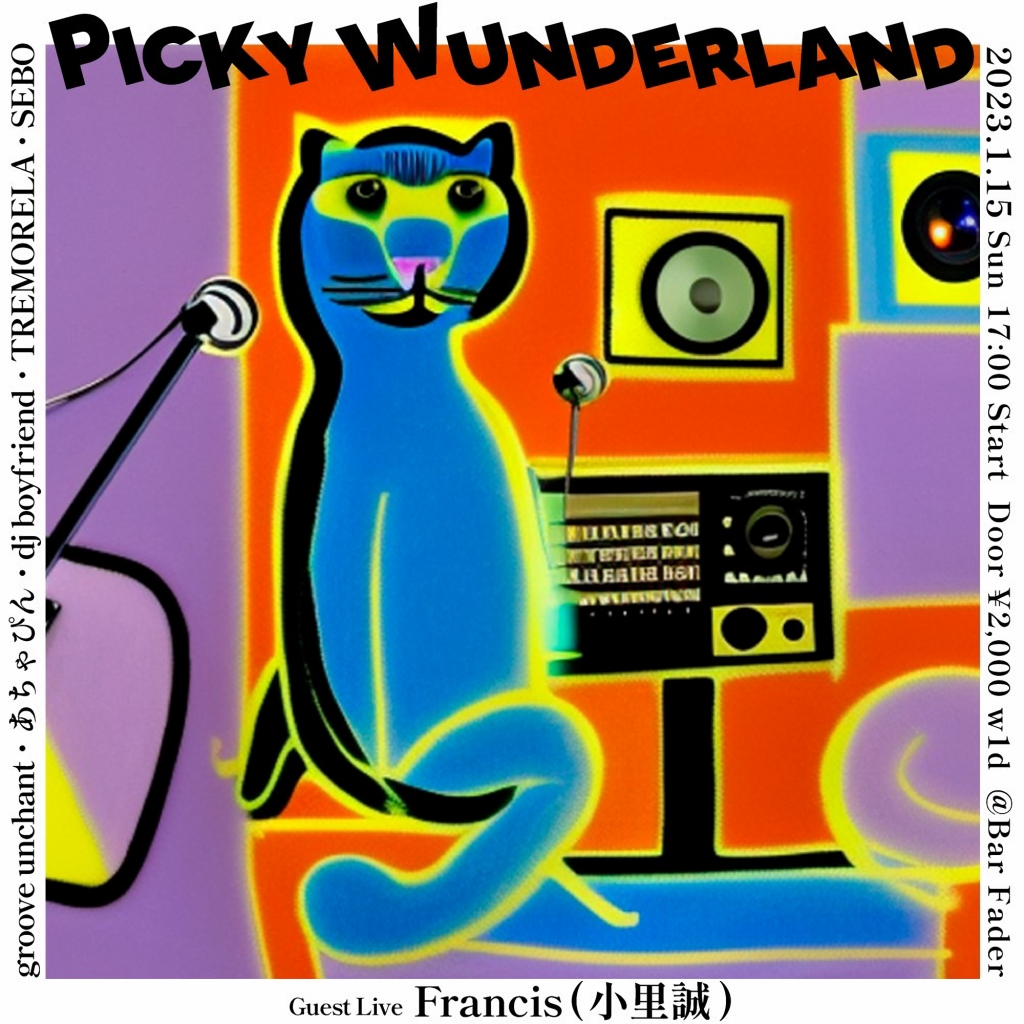 2023-01-012023-01-05 ttetc Picky Wunderland @Bar Fader 2023.1.15 『Picky Wunderland』1/15(日) @大阪Bar Fader17:00~¥2,000 (w1D) LiveFrancis DJgroove unchantあちゃぴんdj boyfriendTREMORELASEBO いいね 読み込み中… 関連
