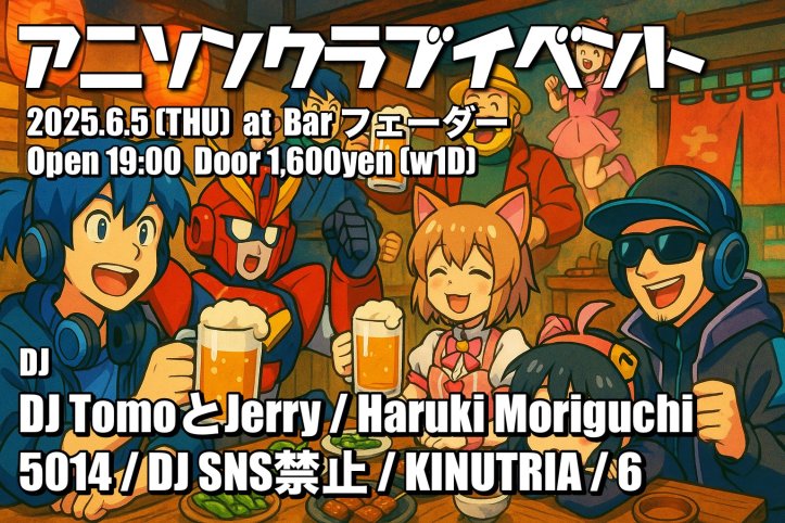 2025-06-012025-07-08 ttetc アニソンクラブイベント @Bar Fader 2025.06/05 🔥#アニソンクラブイベント🔥 OPEN 19:00 – 23:00DOOR 1,600yen(inc.1D) ▼DJDJ TomoとJerryHaruki Moriguchi5014DJ SNS禁止Kinutria6 いいね 読み込み中… 関連