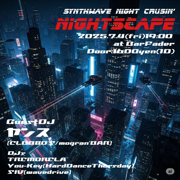 2025-07-012025-07-08 ttetc NIGHT SCAPE@Bar Fader 2025.07/04 NIGHTSCAPE @bar_fader7/4 19:00~🌉GuestDJヤンス 🌃DJsTREMORELAYou-KeySIV いいね 読み込み中… 関連